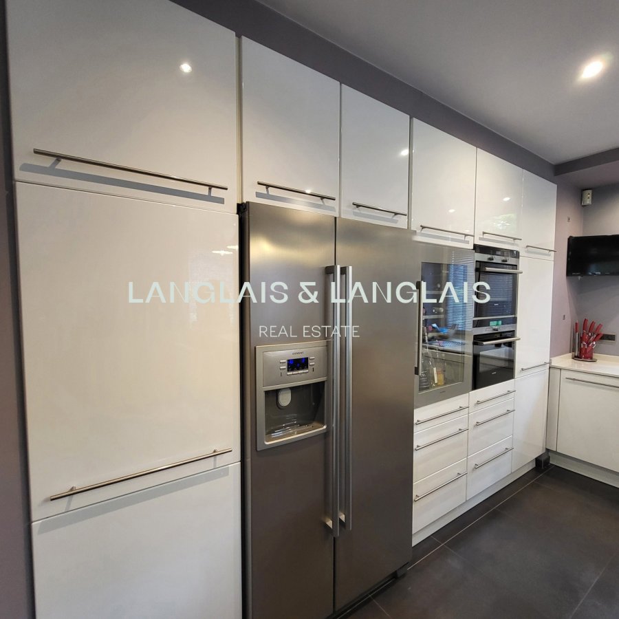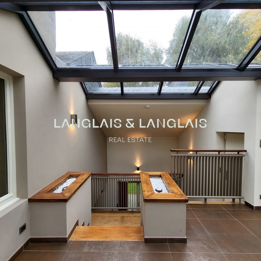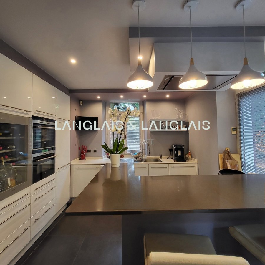 The succession of reception rooms flows naturally ? a winter lounge, a reading room, and an elegant dining area ? while a spacious contemporary kitchen opens directly onto the garden. The ground floor also includes an office and a double garage, perfectly combining aesthetics and functionality.