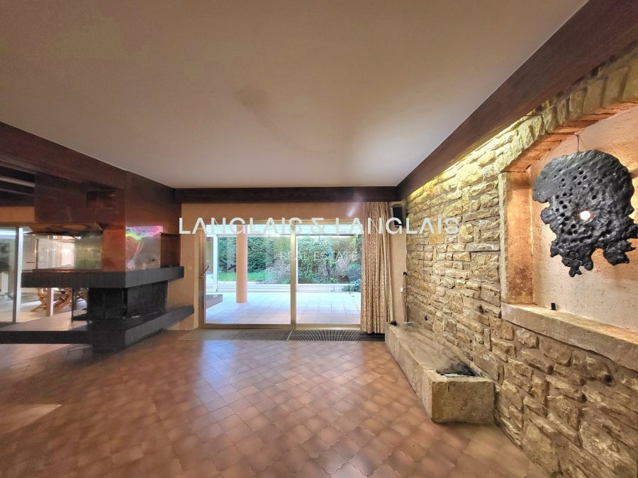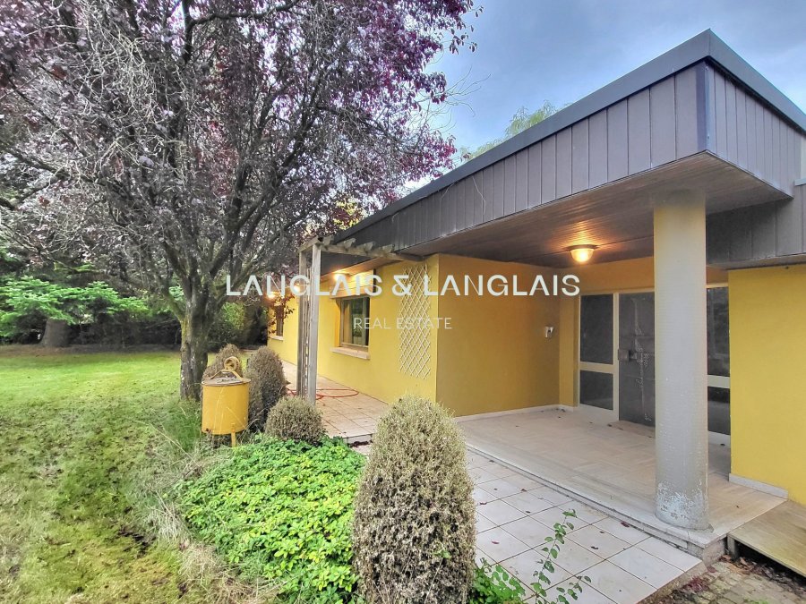 La maison développe une surface habitable d?environ 212 m², complétée par une grande véranda lumineuse ouvrant sur le jardin. L?agencement actuel comprend un vaste séjour avec cheminée, une cuisine attenante, un bureau, trois chambres spacieuses, deux salles de bains, ainsi qu?un hall d?entrée accueillant ? le tout sur un seul niveau.