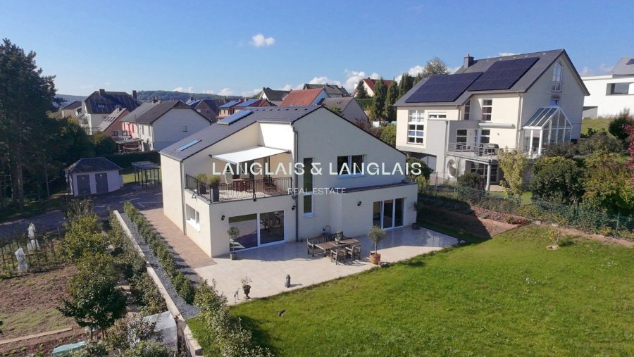 Set on the residential heights of Grevenmacher, this residence built in 2018 embodies the essence of contemporary refinement. Its understated façade, full south orientation, and top-tier energy performance (class A/A) make it both discreet and remarkably efficient.Built on a plot of approximately 12 ares, the property offers a total surface area of 340 m², including 206 m² of living space. Every area has been thoughtfully designed to create a fluid, luminous experience, in perfect harmony with the surrounding landscape.